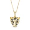 Representing the Super-Villain Cheetah, this diamond pendant captures your fearless spirit. Crafted in warm 10K gold and black rhodium plate, this choice showcases a sculpted cheetah head adorned with alluring champagne diamond eyes and a spot design in black rhodium. Radiant with 1/20 ct. t.w. of diamonds and a brilliant buffed luster, this pendant suspends along an 18.0-inch cable chain, with an additional closure ring at 16.0 inches, that secures with a spring-ring clasp. This exclusive fine jewelry collection inspires you to wear your strength, confidence and power.