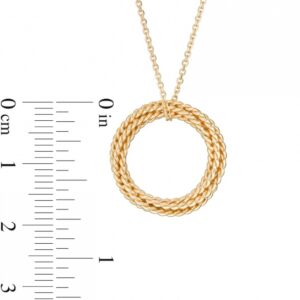 An entrancing look you won’t be able to resist, this pendant exudes modern sophistication. Created in warm 10K gold, this style features a crossover design of layered ribbons. The sumptuous rope texture is an elegant representation of the Lasso of Truth. Suspending along an adjustable 19.0-inch cable chain that secures with a lobster claw clasp, and polished to a bright shine, this style elevates your day or evening attire.This exclusive fine jewelry collection inspires you to wear your strength, confidence and power.